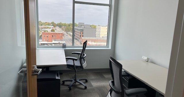 Gross lease office with plenty of windows to brighten up your workday. This office suite is comprised of central work area/reception, 4 individual offices, and a conference room. Located in the heart of downtown within a premiere office building.